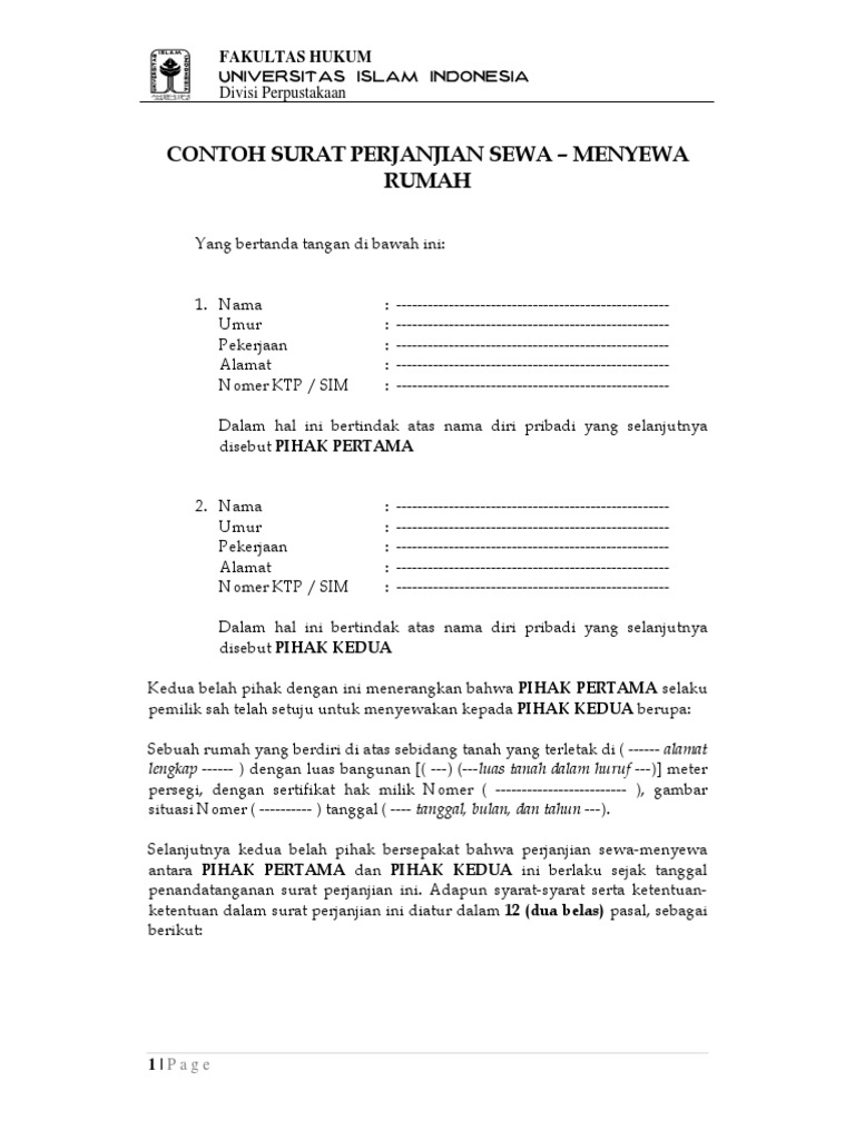SURAT PERJANJIAN SEWA MENYEWA RUMAH KANTOR.docx from imgv2-2-f.scribdassets.com Surat perjanjian kontrak rumah akan membuat pihak penyewa dan yang menyewakan dilindungi oleh hukum. Surat perjanjian kontrak rumah dapat mengikat kedua belah pihak yang bersepakat. Harus ada surat perjanjian sewa rumah. Surat perjanjian menyewakan mobil, surat perjanjian sewa rumah, surat perjanjian bekerja sama, surat perjanjian kerja, surat perjanjian hutang piutang dan masih banyak lagi. Kami yang bertanda tangan di bawah ini Surat perjanjian sewa rumah / kontrak rumah. Sewa menyewa rumah ternyata juga perlu legalitas hukum, agar tidak terjadi sengketa. Contoh surat perjanjian sewa rumah/kontrak.